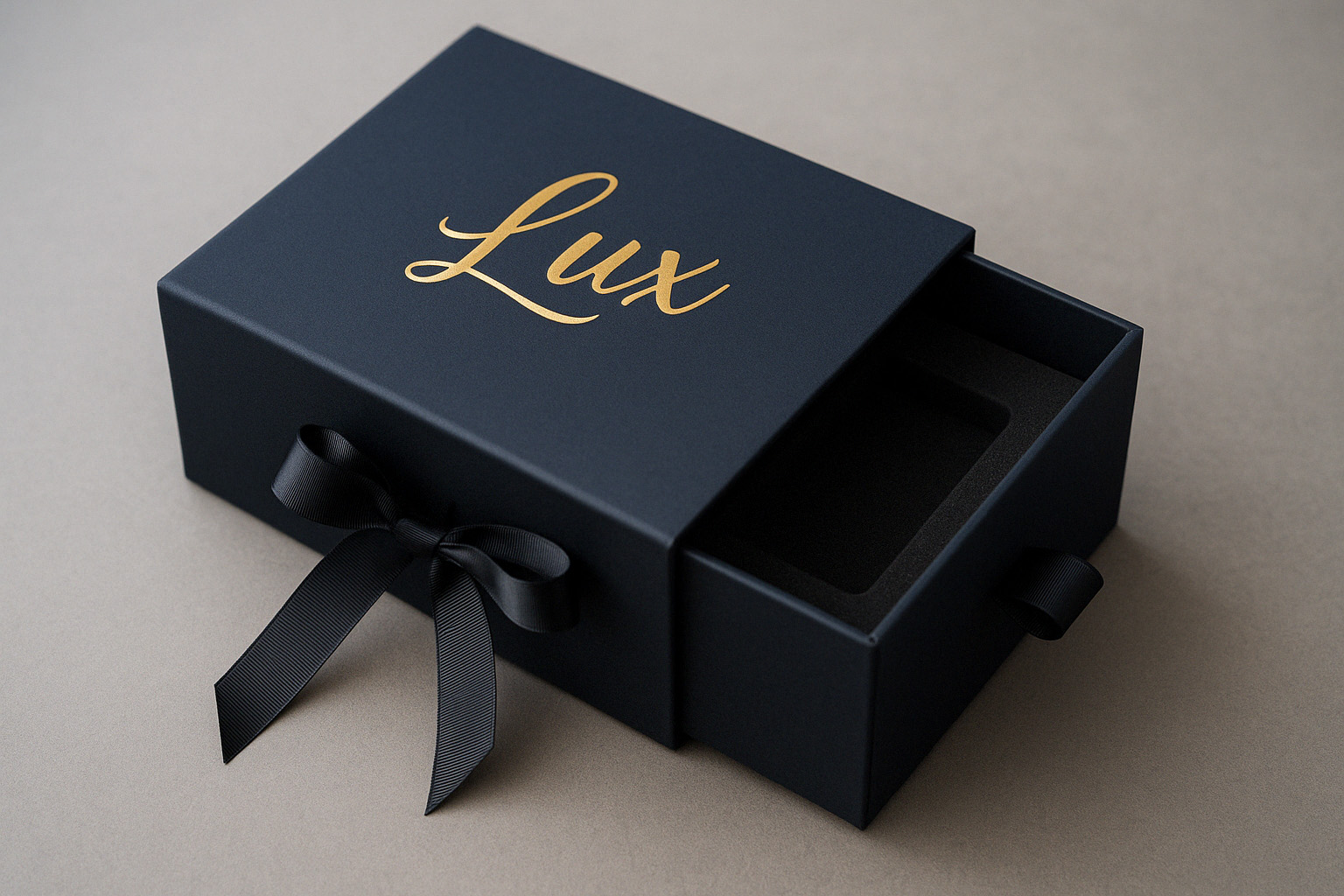 ![]() Soft-Touch Drawer Box with Ribbon Pull | Rigid board with pull-out tray | Soft-touch matte, foil stamped logo | Custom EVA foam insert | Elegant and tactile | Moderate | 400+ | $$$$ |