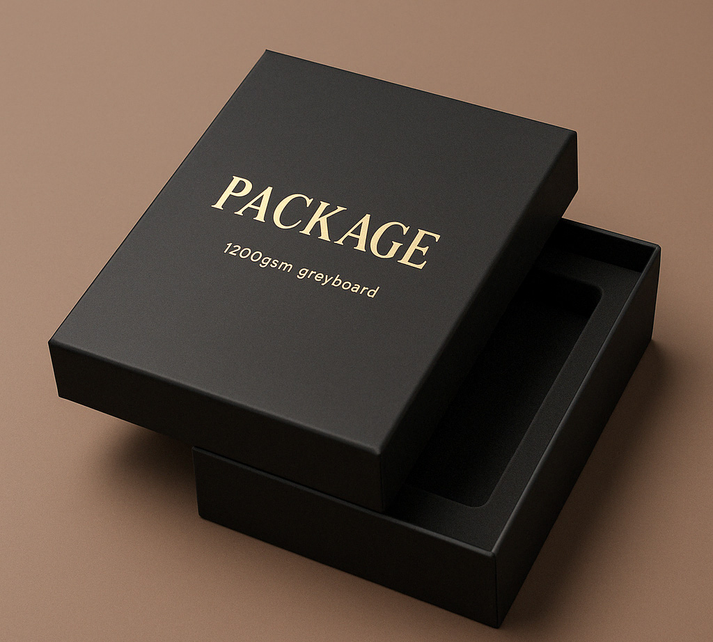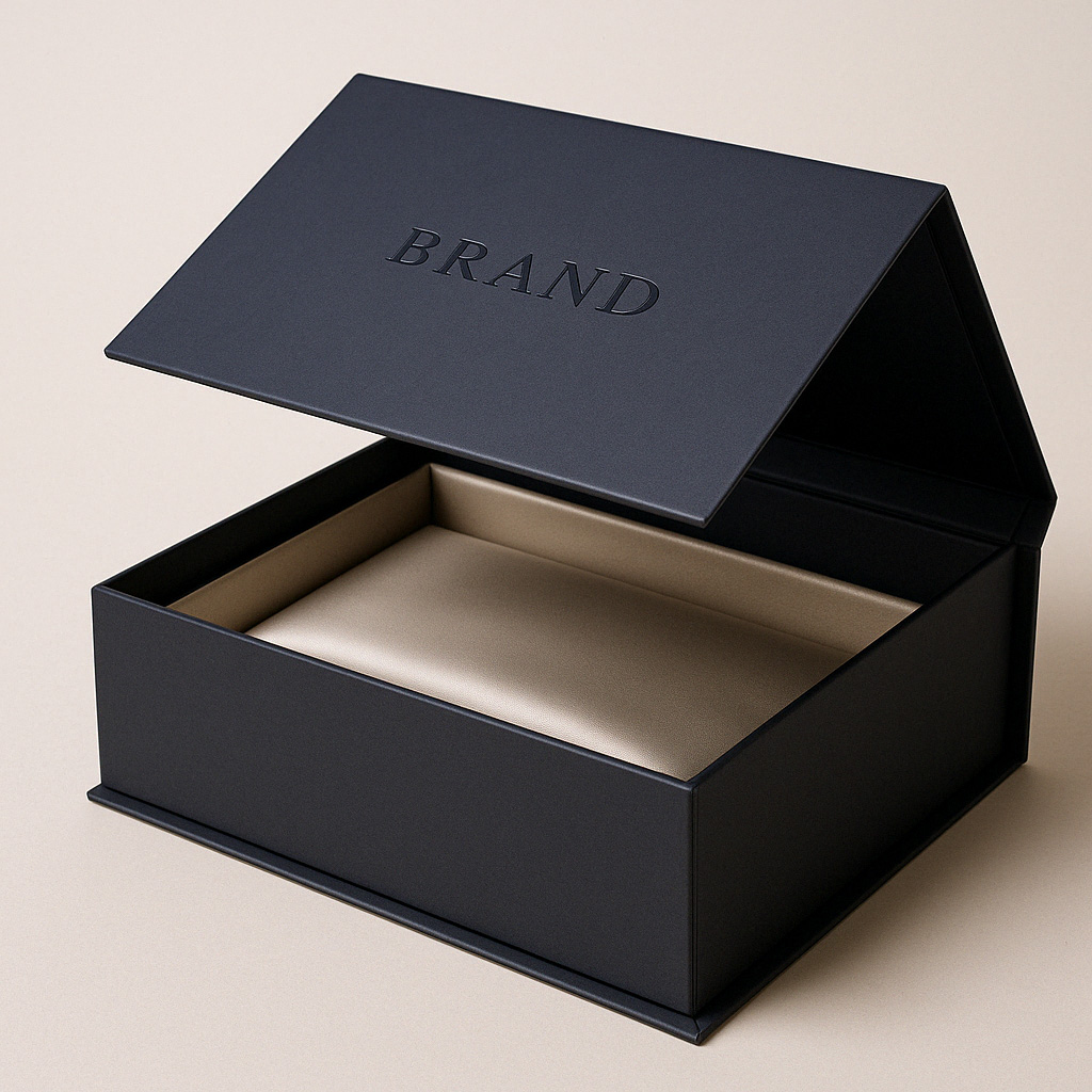 ![]() Rigid Box + Soft Touch + Gold Foil | 1200gsm greyboard | Soft touch, foil stamping | Custom foam tray | Elegant, high-end retail | Moderate | 500+ | $$$$ |