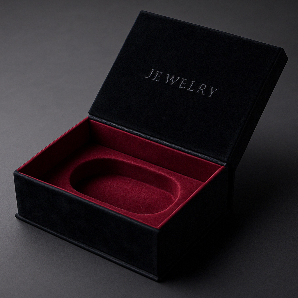 ![]() Magnetic Closure + Velvet Interior | Rigid board with magnetic flap | Velvet wrap, soft-touch | Velvet-lined cradle | Luxurious and dramatic | Low | 750+ | $$$$$ |