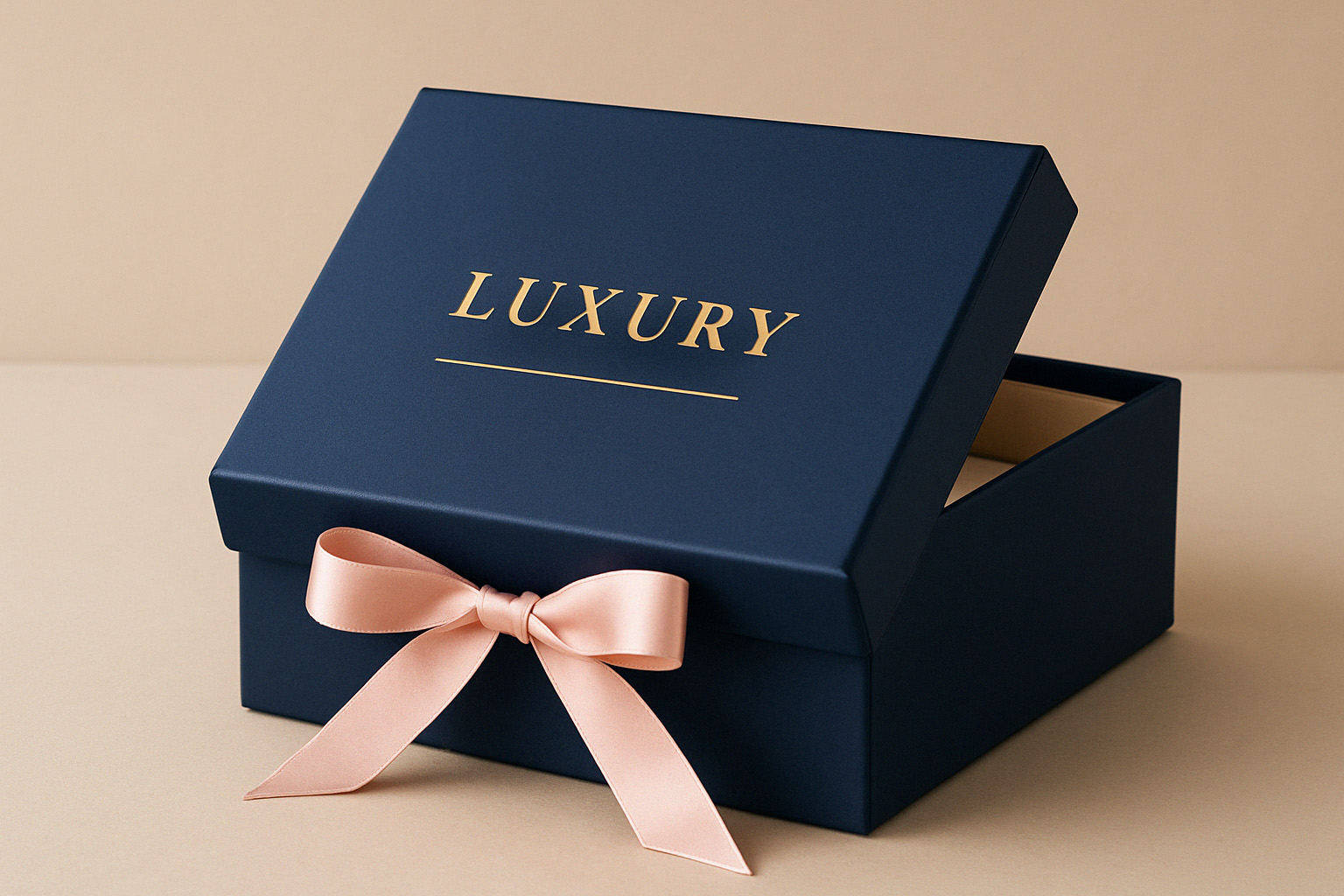 ![]() Luxury Lid & Base Box + Satin Ribbon | Rigid box with lid and base structure | Soft-touch, satin ribbon tie | Fitted cardboard or fabric insert | Classic and gift-ready | Moderate | 500+ | $$$$ |
