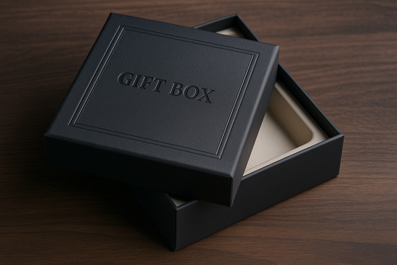 ![]() Rigid Gift Box with Embossed Frame | Heavy greyboard with paper wrap | Textured paper and embossed border | Molded pulp tray | Classic gift-ready luxury | High | 500+ | $$$$ |